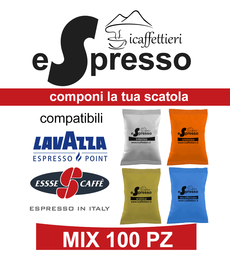 Componi la tua scatola da 96 capsule miste compatibili A Modo Mio* a step da 16 pezzi. Scegli tra 4 miscele di caffè, orzo, te al limone, ginseng, nocciolino e cappuccino  nelle quantità che desideri.