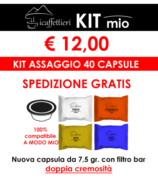 Vuoi provare le capsule compatibili con la tua macchina A Modo Mio ® ma temi di sbagliare? Hai poco spazio e preferisci una scatola più piccola? Per questo i Caffettieri hanno creato per te il KIT assaggio da 48 capsule compatibili A Modo Mio ®.